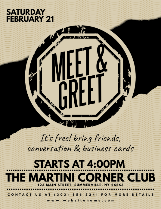 Meet And Greet Flyers Templates. Anyone can design an event flyer in minutes. Hundreds of event flyer templates and free downloads. In the situation that you glance around, you'll notice that anything is marked. From a little container to a big office play-act area, all single concern will undoubtedly have at any rate one mark. Naming things is valuable, simple and functional, and the applications are basically interminable. You can find a wide assortment of names accessible available, in various shapes and sizes, styles, plans, hues, materials, template, etc.