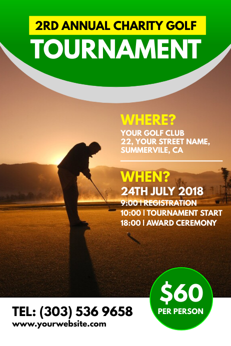 Its beauty is further enhanced due to multiple images of small-sized golf players in black and a visually stunning background in white. As you plan your project, you may be tempted to download a fundraiser flyer template for free. Canva Print makes flyer printing pain-free.
